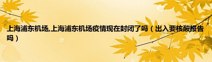 本文,上海浦东机场,上海浦东机场疫情现在封闭了吗,出入要核酸报告吗到此就分享完毕,希望对大家有所帮助。