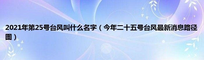 本文,2021年第25号台风叫什么名字,今年二十五号台风最新消息路径图到此就分享完毕,希望对大家有所帮助。