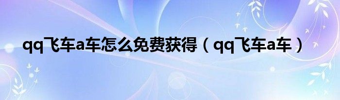 以上就是【qq飞车a车怎么免费获得,qq飞车a车】相关内容。
