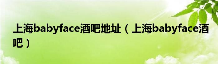 大家好,小问来为大家解答以上问题。上海babyface酒吧地址,上海babyface酒吧这个很多人还不知道,现在让我们一起来看看吧!