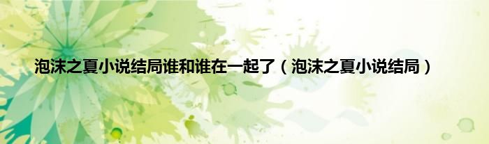 大家好,小问来为大家解答以上问题。泡沫之夏小说结局谁和谁在一起了,泡沫之夏小说结局这个很多人还不知道,现在让我们一起来看看吧!