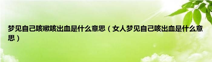 大家好,综合小编来为大家讲解下。梦见自己咳嗽咳出血是什么意思,女人梦见自己咳出血是什么意思这个很多人还不知道,现在让我们一起来看看吧!