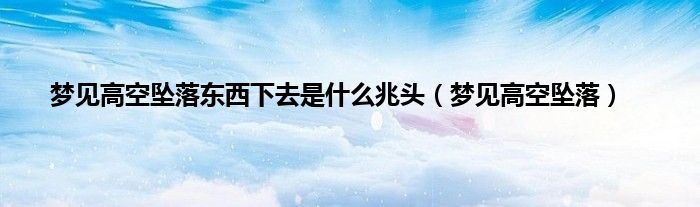 本文梦见高空坠落东西下去是什么兆头,梦见高空坠落到此分享完毕,希望对大家有所帮助。