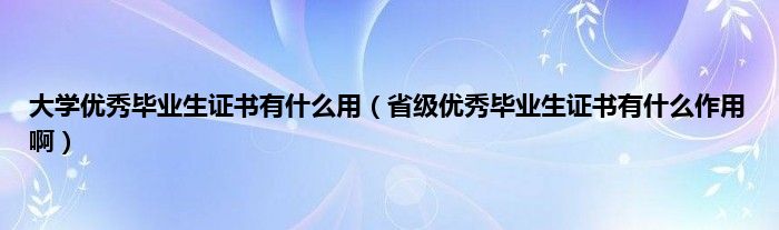 本文,大学优秀毕业生证书有什么用,省级优秀毕业生证书有什么作用啊到此就分享完毕,希望对大家有所帮助。