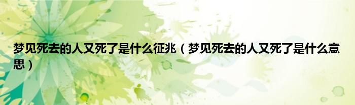 大家好,综合小编来为大家讲解下。梦见死去的人又死了是什么征兆,梦见死去的人又死了是什么意思这个很多人还不知道,现在让我们一起来看看吧!