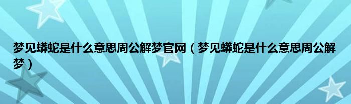 本文梦见蟒蛇是什么意思周公解梦官网,梦见蟒蛇是什么意思周公解梦到此分享完毕,希望对大家有所帮助。