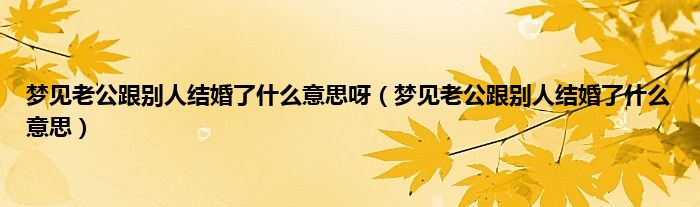 一、梦见老公跟别人结婚了的梦境解析: 梦见老公跟别人结婚了,预示着你近期的运势很好,身边将会有意外的惊喜,也许是别人送自己东西。