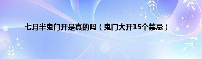 大家好,综合小编来为大家讲解下。七月半鬼门开是真的吗,鬼门大开15个禁忌这个很多人还不知道,现在让我们一起来看看吧!