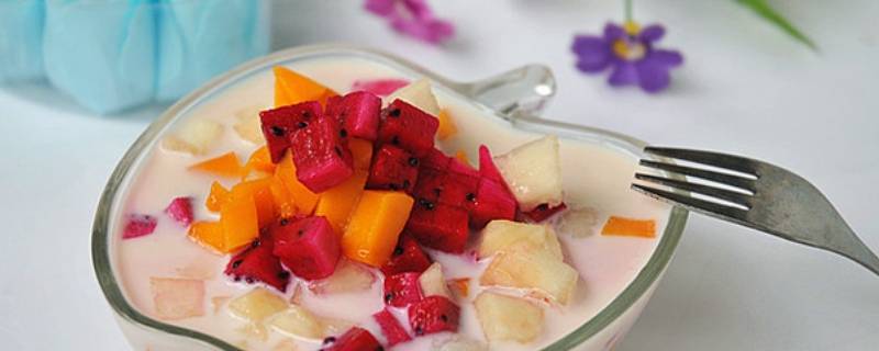 2、草莓去蒂洗净,切成两半,猕猴桃去皮,切成薄片,黄桃切成一口大小。