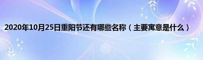 大家好,综合小编来为大家讲解下。2020年10月25日重阳节还有哪些名称,主要寓意是什么这个很多人还不知道,现在让我们一起来看看吧!