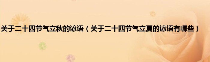 大家好,综合小编来为大家讲解下。关于二十四节气立秋的谚语,关于二十四节气立夏的谚语有哪些这个很多人还不知道,现在让我们一起来看看吧!