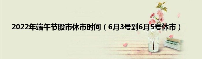 本文2022年端午节股市休市时间,6月3号到6月5号休市到此分享完毕,希望对大家有所帮助。