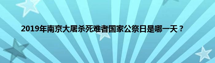 大家好,综合小编来为大家讲解下。2019年南京大屠杀死难者国家公祭日是哪一天?这个很多人还不知道,现在让我们一起来看看吧!