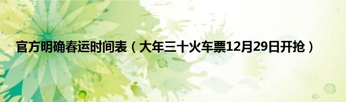 大家好,综合小编来为大家讲解下。官方明确春运时间表,大年三十火车票12月29日开抢这个很多人还不知道,现在让我们一起来看看吧!