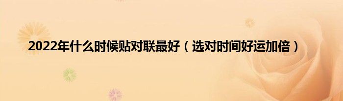 大家好,综合小编来为大家讲解下。2022年什么时候贴对联最好,选对时间好运加倍这个很多人还不知道,现在让我们一起来看看吧!