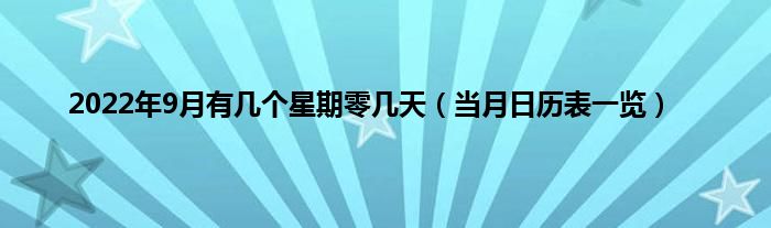 大家好,综合小编来为大家讲解下。2022年9月有几个星期零几天,当月日历表一览这个很多人还不知道,现在让我们一起来看看吧!