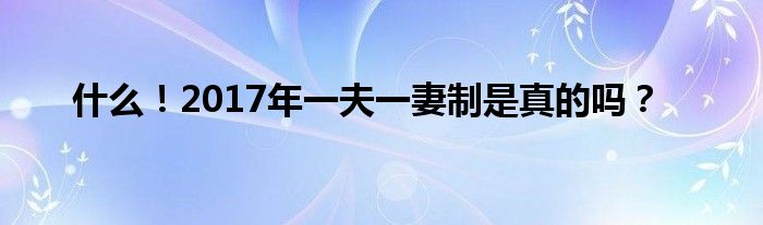 大家好,综合小编来为大家讲解下。什么!2017年一夫一妻制是真的吗?这个很多人还不知道,现在让我们一起来看看吧!