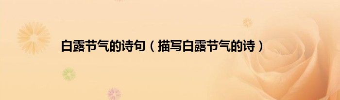 大家好,综合小编来为大家讲解下。白露节气的诗句,描写白露节气的诗这个很多人还不知道,现在让我们一起来看看吧!