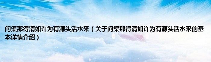 本文关于问渠那得清如许为有源头活水来的基本详情介绍就讲解完毕,希望对大家有所帮助。