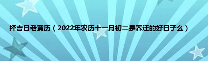 大家好,综合小编来为大家讲解下。择吉日老黄历,2022年农历十一月初二是乔迁的好日子么这个很多人还不知道,现在让我们一起来看看吧!
