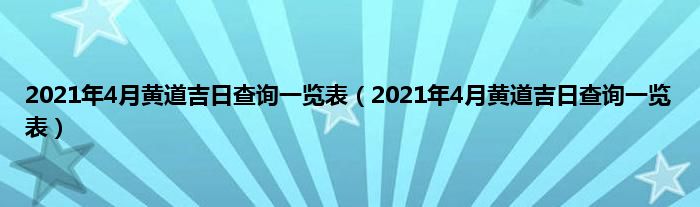 大家好,综合小编来为大家讲解下。2021年4月黄道吉日查询一览表,2021年4月黄道吉日查询一览表这个很多人还不知道,现在让我们一起来看看吧!