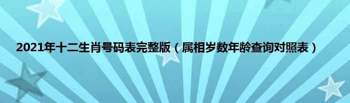 本文2021年十二生肖号码表完整版,属相岁数年龄查询对照表到此分享完毕,希望对大家有所帮助。