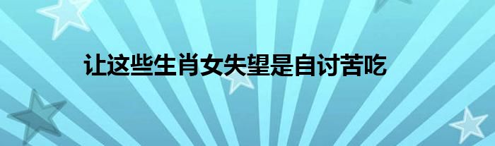 大家好,综合小编来为大家讲解下。让这些生肖女失望是自讨苦吃这个很多人还不知道,现在让我们一起来看看吧!