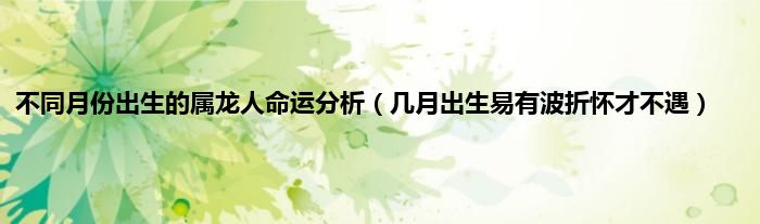 大家好,综合小编来为大家讲解下。不同月份出生的属龙人命运分析,几月出生易有波折怀才不遇这个很多人还不知道,现在让我们一起来看看吧!