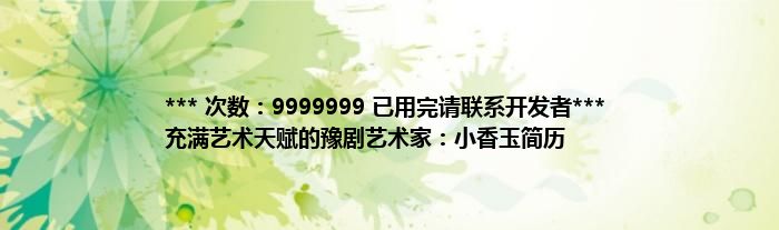 大家好,综合小编来为大家讲解下。*** 次数:9999999 已用完请联系开发者*** 充满艺术天赋的豫剧艺术家:小香玉简历这个很多人还不知道,现在让我们一起来看看吧!