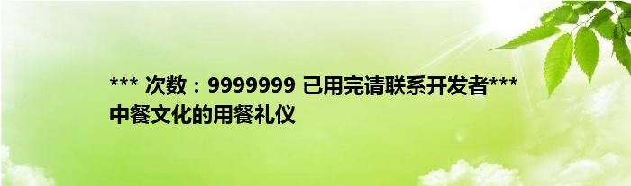 大家好,综合小编来为大家讲解下。*** 次数:9999999 已用完请联系开发者*** 中餐文化的用餐礼仪这个很多人还不知道,现在让我们一起来看看吧!