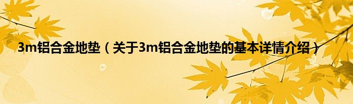 3m铝合金地垫(关于3m铝合金地垫的基本详情介绍)
