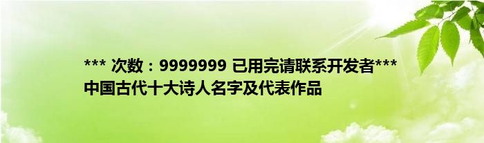 ***次数:9999999已用完请联系开发者***中国古代十大诗人名字及代表作品