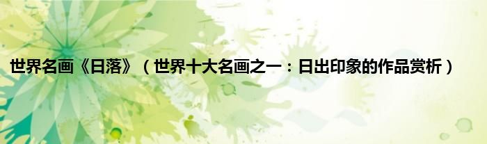 本文世界名画《日落》,世界十大名画之一:日出印象的作品赏析到此分享完毕,希望对大家有所帮助。