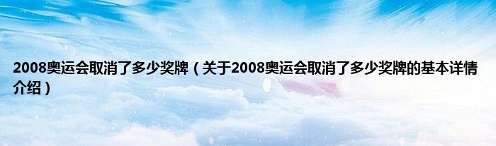 本文关于2008奥运会取消了多少奖牌的基本详情介绍就讲解完毕,希望对大家有所帮助。