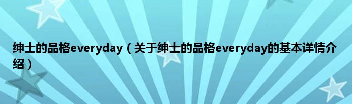 本文关于绅士的品格everyday的基本详情介绍就讲解完毕,希望对大家有所帮助。