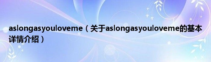 本文关于aslongasyouloveme的基本详情介绍就讲解完毕,希望对大家有所帮助。