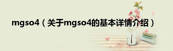 本文关于mgso4的基本详情介绍就讲解完毕,希望对大家有所帮助。