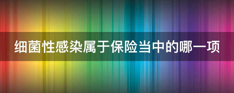 细菌性感染属于保险当中的疾病保险。保险是指投保人根据合同约定,向保险人支付保险费,保险人对于合同约定的可能发生的事故因其发生所造成的财产损失承担赔偿保险金责任,或者被保险人死亡、伤残、疾病或者达到合同约定的年龄、期限等条件时承担给付保险金责任的商业保险行为。从经济角度看,保险是分摊意外事故损失的一种财务安排;从法律角度看,保险是一种合同行为,是一方同意补偿另一方损失的一种合同安排;从社会角度看,保险是社会经济保障制度的重要组成部分,是社会生产和社会生活精巧的稳定器;从风险管理角度看,保险是风险管理的一种方法。