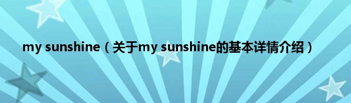 本文关于my sunshine的基本详情介绍就讲解完毕,希望对大家有所帮助。