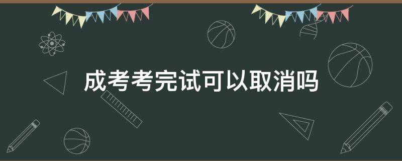成考考完试不可以取消。成考考完发布后,此成绩已经记录档案,无法抹除。成考即成人高等学校招生全国统一考试,简称成人高考,是为我国各类成人高等学校选拔合格的毕业生以进入更高层次学历教育的入学考试,成人高考属国民教育系列,列入国家招生计划,国家承认学历,全国招生统一考试。成人高等学历教育分为专科起点本科(简称专升本)、高中起点本科(简称高起本)和专科(简称高起专)三种;学习形式分为脱产、业余、函授三种,大多数院校仅保留了函授和业余两种方式。