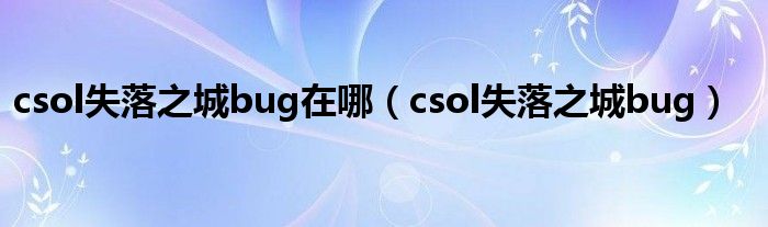 csol失落之城bug在哪(csol失落之城bug)
