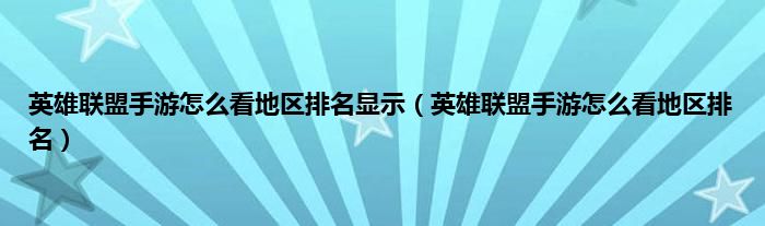 英雄联盟手游怎么看地区排名显示(英雄联盟手游怎么看地区排名)