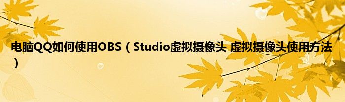 大家好,综合小编来为大家讲解下电脑QQ如何使用OBS,Studio虚拟摄像头 虚拟摄像头使用方法这个很多人还不知道,现在让我们一起来看看吧!