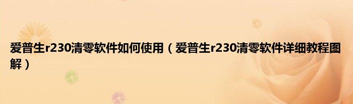 大家好,综合小编来为大家讲解下爱普生r230清零软件如何使用,爱普生r230清零软件详细教程图解这个很多人还不知道,现在让我们一起来看看吧!