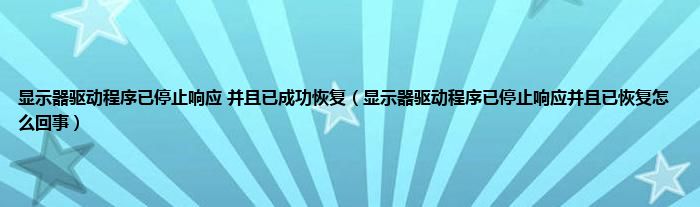 显示器驱动程序已停止响应 并且已成功恢复(显示器驱动程序已停止响应并且已恢复怎么回事)
