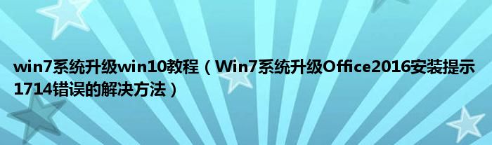 大家好,综合小编来为大家讲解下win7系统升级win10教程,Win7系统升级Office2016安装提示1714错误的解决方法这个很多人还不知道,现在让我们一起来看看吧!