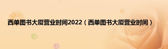大家好,小问来为大家解答以上问题。西单图书大厦营业时间2022,西单图书大厦营业时间这个很多人还不知道,现在让我们一起来看看吧!