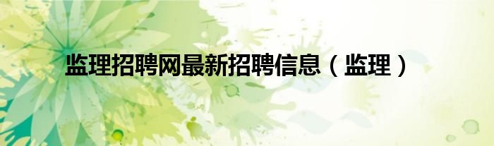 大家好,小问来为大家解答以上问题。监理招聘网最新招聘信息,监理这个很多人还不知道,现在让我们一起来看看吧!