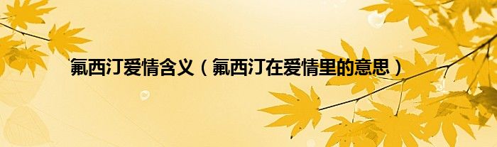 1、 氟西汀爱情的意义:代表爱人很重要,爱人是自己的幸福,只有爱人才能让自己幸福;爱是你自己的希望,也意味着你离不开爱。