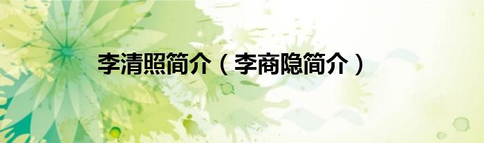 大家好,小问来为大家解答以上问题。李清照简介,李商隐简介这个很多人还不知道,现在让我们一起来看看吧!